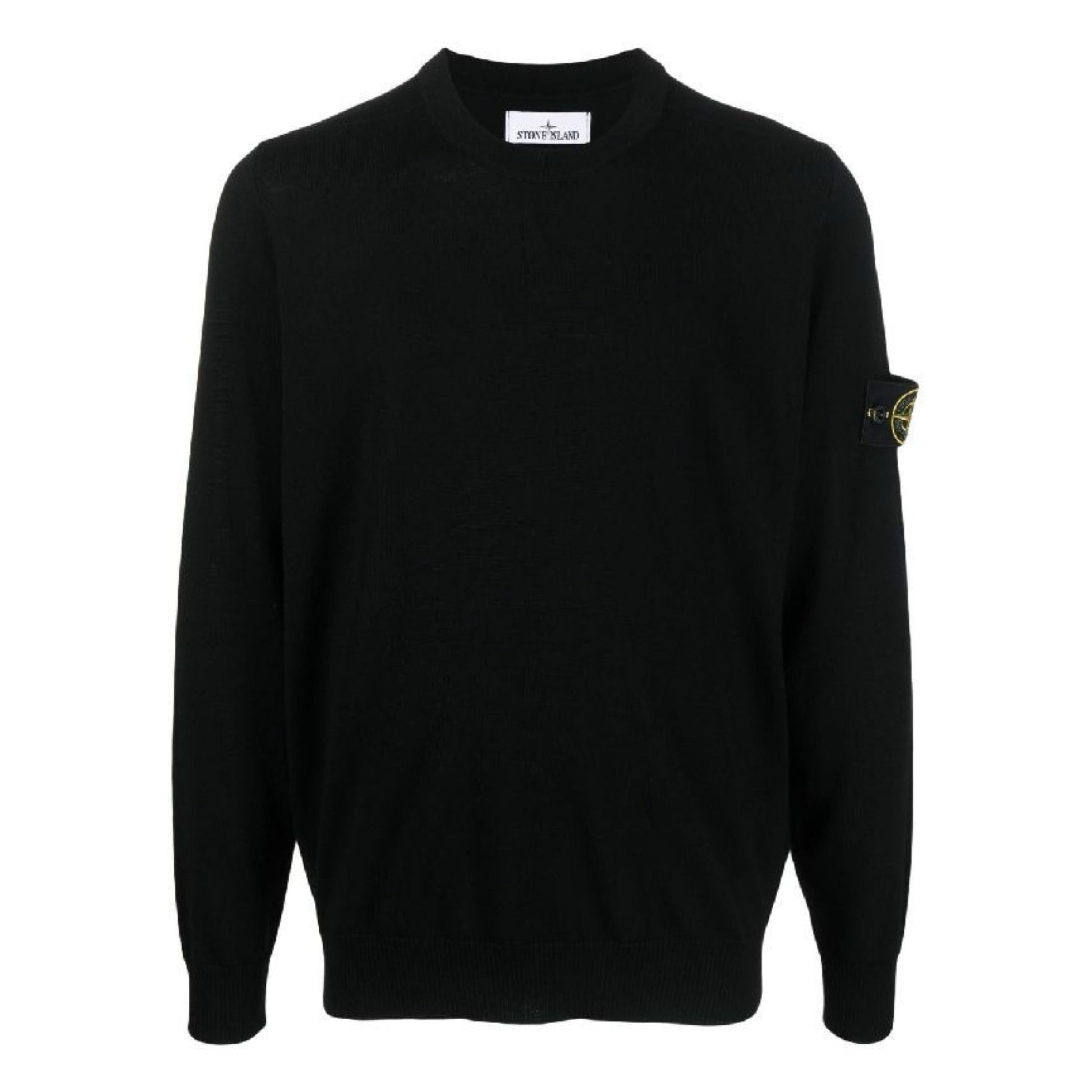Stone Island Light Wool Crewneck Knit Sweatshirt in Black